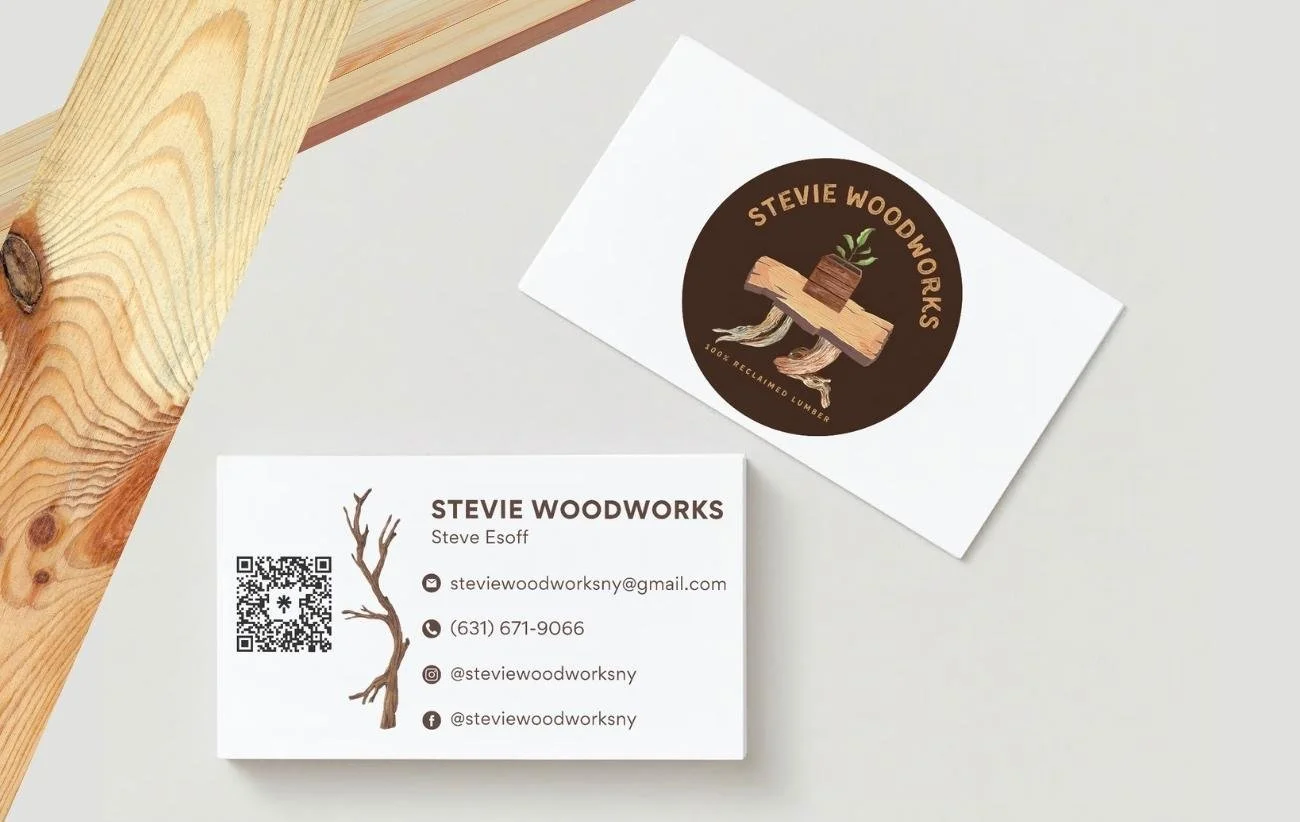 Building on the logo design, we also created business cards that maintained the same rustic, nature-inspired theme. These cards were designed for Steve to hand out at local fairs and events across Long Island, helping to establish a strong and memorable brand presence.