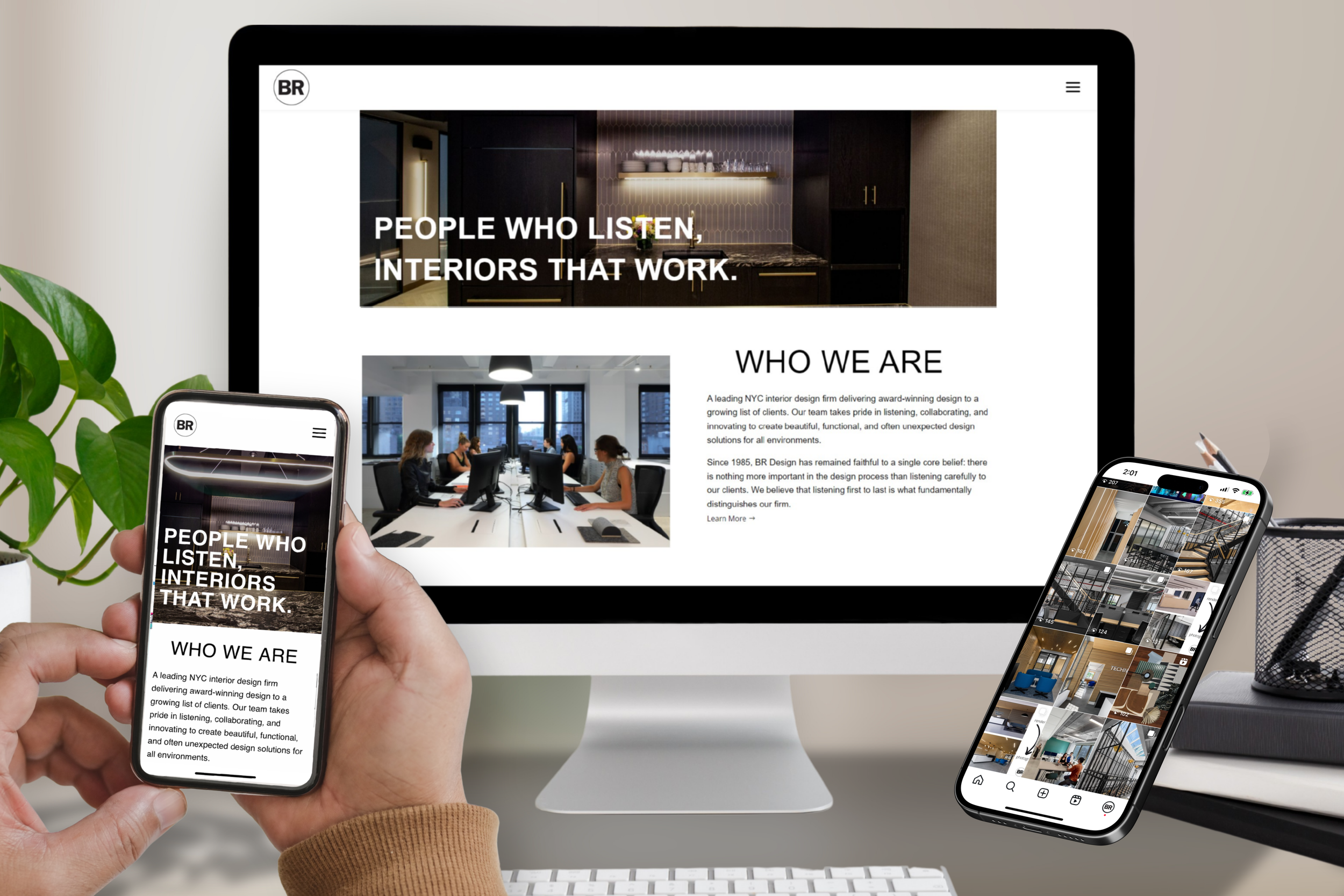 Our team captured a mix of professional interior photography—both finished and in-progress spaces—alongside team headshots and candid moments, offering a behind-the-scenes look into the firm’s dynamic culture. In addition to web design, Muse managed and created content for BR Design Associates’ social media platforms, including Instagram, Facebook, LinkedIn, YouTube, and Pinterest, as well as overseeing email communications.