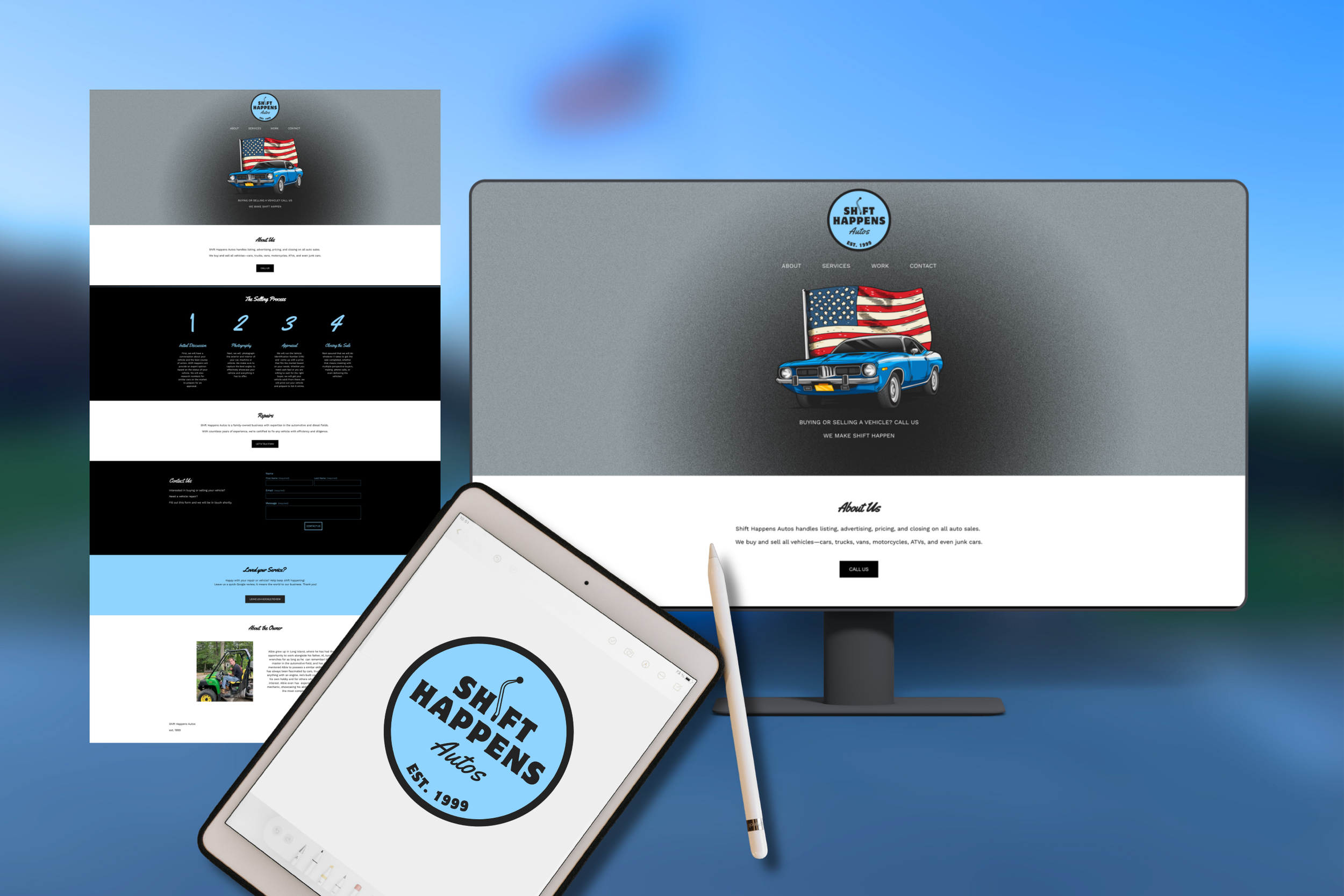 ServiceS: Logo Design and Website desgin Muse partnered with Shift Happens Autos to develop a bold and cohesive brand identity through custom logo and website design. The visual direction focused on a clean, monochromatic palette to create a modern and professional foundation, accented by a striking blue hue inspired by the iconic color of the classic Cuda. This contrast allowed key elements of the brand to stand out while maintaining a sleek, high-impact aesthetic suited for the automotive industry. The new website was designed to reflect the brand’s personality: confident, clever, and performance-driven, while clearly communicating services and improving the overall user experience. Together, the logo and website establish a strong visual presence that helps Shift Happens Autos stand out in a competitive market!